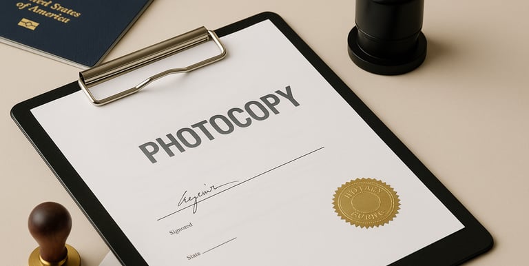 Realizamos la autenticación notarial de copias para confirmar que una fotocopia es fiel y exacta al documento original.