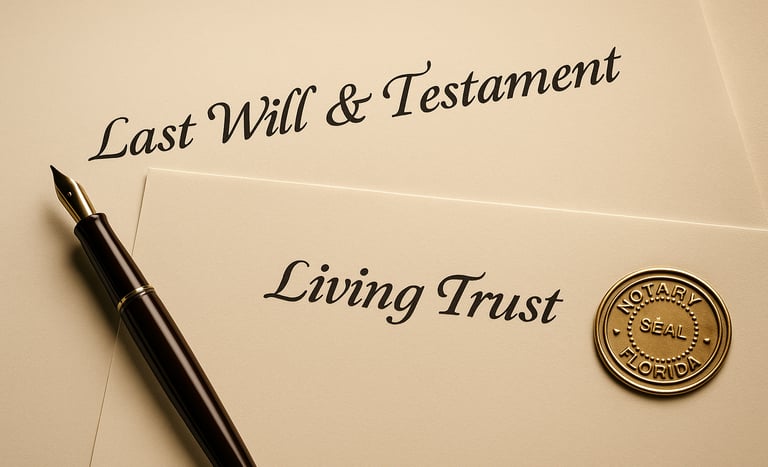 Ofrecemos la certificación notarial de testamentos, fideicomisos y otros documentos de planificación patrimonial, garantizando que cada firma sea válida y cumpla con los requisitos legales del Estado de Florida.