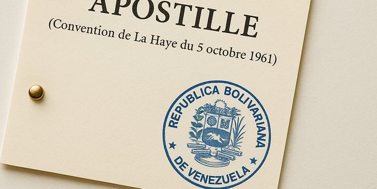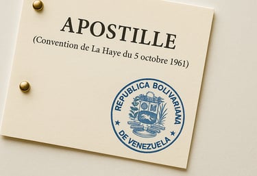 Gestionamos la apostilla o legalización de documentos emitidos en Venezuela para su validez internacional, conforme al Convenio de La Haya.